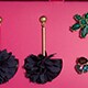 - Zinc, brass, glass and resin stones, fabric, cubic zirconia, titanium posts.