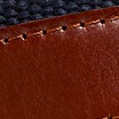 • Leather, cotton canvas trim.