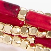 - Gold-plated brass beads, stones, acrylic, elastic cord.
